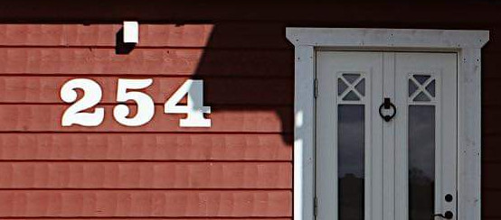 Nummerskylt i plåt till ett privat hem.